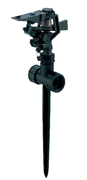 This plastic impact sprinkler head from Orbit is ideal for watering large lawn and yard areas. With an area coverage of up to 80 feet in radius, it is easily transportable and easily inserts into the ground with a durable plastic spike. This Orbit sprinkler features an anti-backsplash tube and deflector to keep it rotating quietly and smoothly and to prevent awkward and unwanted spray. It easily adjusts to cover a part- or full-circle area. Its spike base is designed to work on its own or con...